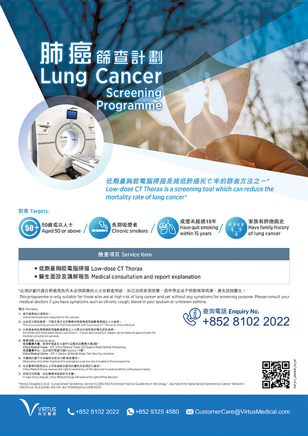 | 3. | 以前曾参與低劑量胸腔電腦斷層掃描之人士需另外致電預約專科診症服務。 |